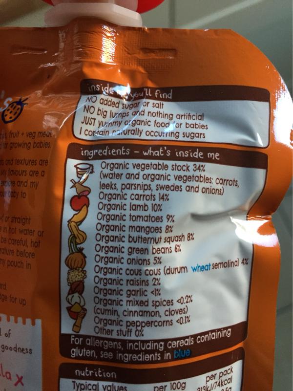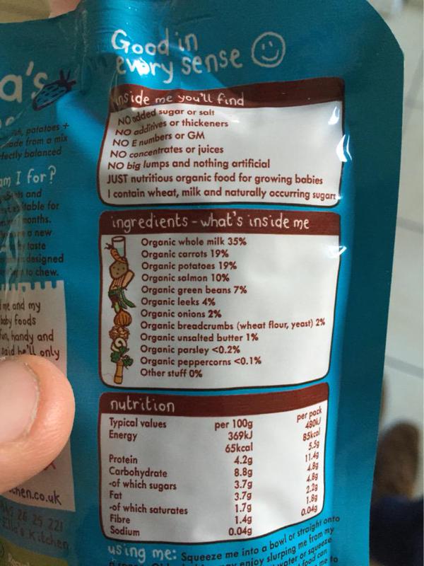 You can see the difference below. We bought the blue baby food pack by mistake, after a quick check for allergens in bold (or blue in this manufacturer’s case). Many processed foods have a long ingredients list, and even though milk is right there at the top, we still nearly missed it! Luckily, we checked carefully before giving it to the boy, as it is older packaging from before the law changed.