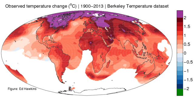 A quick fix to a map today, courtesy of Ed Hawkins over at better figures-approved blog Climate Lab Book. Ed asked “When will we reach 2°C?“, and posted this great map, showing areas of the world that have risen already by 2°C* in the last century or so. There is a nice use of appropriate […]